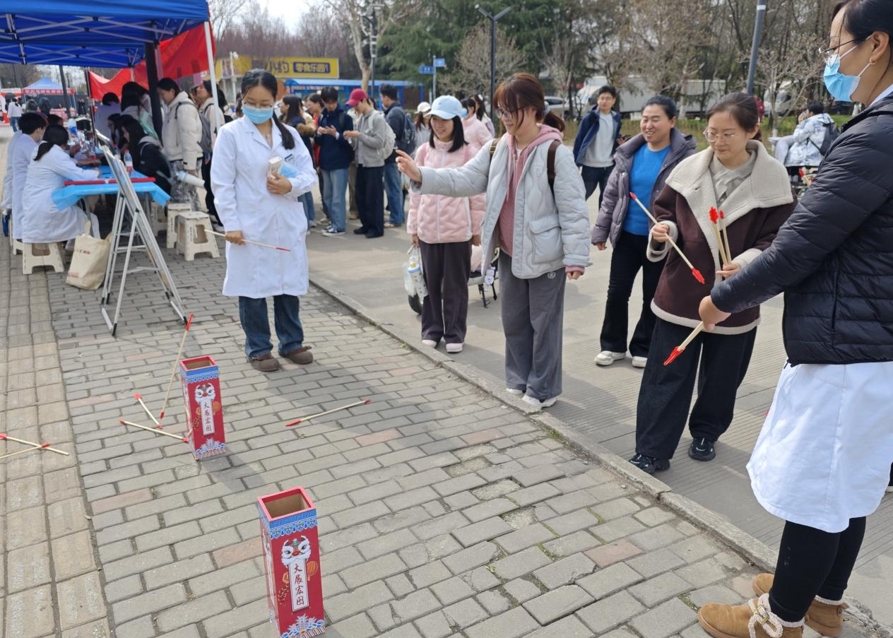 3月6日中午,鄠邑校區(qū)以“關(guān)愛女性健康,從呵護(hù)身心開始”為主題的專場健康咨詢在東區(qū)食堂對面舉行。通用環(huán)球中鐵西安醫(yī)院王娜娜、任朝偉、員海娟,及校醫(yī)院王凱、李佳晨、齊琳婧等專家組成健康咨詢團(tuán)隊,提供女性常見病咨詢、中醫(yī)體質(zhì)辨識、內(nèi)分泌調(diào)理、腫瘤預(yù)防等服務(wù)?,F(xiàn)場開設(shè)血壓、血糖免費(fèi)檢測點(diǎn),校醫(yī)院急救教育團(tuán)隊聚焦校園場景普及心肺復(fù)蘇與海姆立克急救法,踐行“人人學(xué)急救,急救為人人”理念?;顒釉鲈O(shè)趣味小游戲與健康知識問答環(huán)節(jié),為參與者發(fā)放精美小禮品,現(xiàn)場氛圍溫馨熱烈、秩序井然。