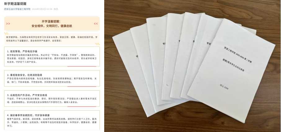 為進一步強化學(xué)生的安全防范意識,切實筑牢校園安全防線,規(guī)范日常行為管理,營造安全、和諧、有序的學(xué)習(xí)生活環(huán)境,確保新學(xué)期各項工作平穩(wěn)有序開展,管道工程學(xué)院各年級在鄠邑校區(qū)召開了2026年春季學(xué)期開學(xué)安全教育系列工作。