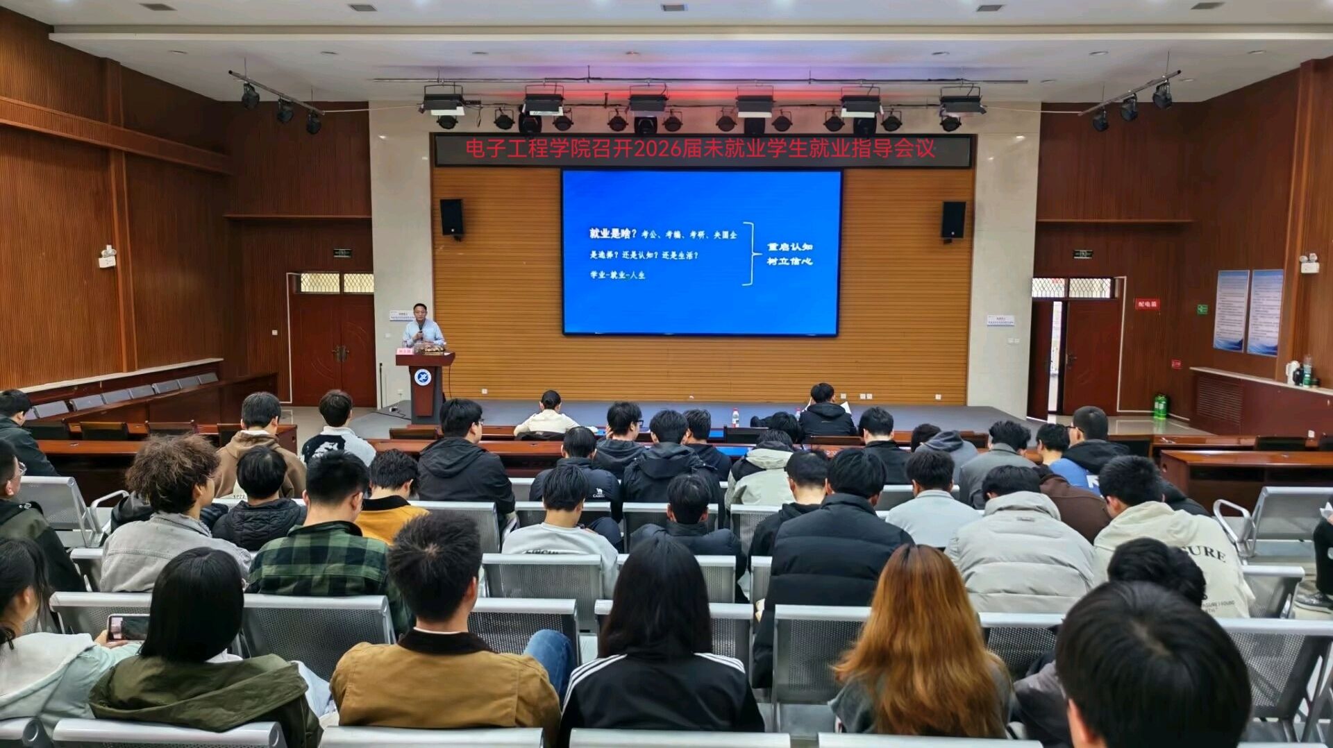 為扎實推進(jìn)2026屆畢業(yè)生就業(yè)工作,幫助未就業(yè)學(xué)生明晰就業(yè)方向、樹立正確擇業(yè)觀,3月11日下午,電子工程學(xué)院在鄠邑校區(qū)崇文樓118室召開2026屆未就業(yè)學(xué)生就業(yè)指導(dǎo)動員會議。學(xué)校學(xué)生工作部(處)副部(處)長、就業(yè)創(chuàng)業(yè)指導(dǎo)中心副主任楊生強受邀作專題就業(yè)指導(dǎo)講座,學(xué)院畢業(yè)班輔導(dǎo)員錢宇航、張零及200余名未就業(yè)畢業(yè)生參加會議。