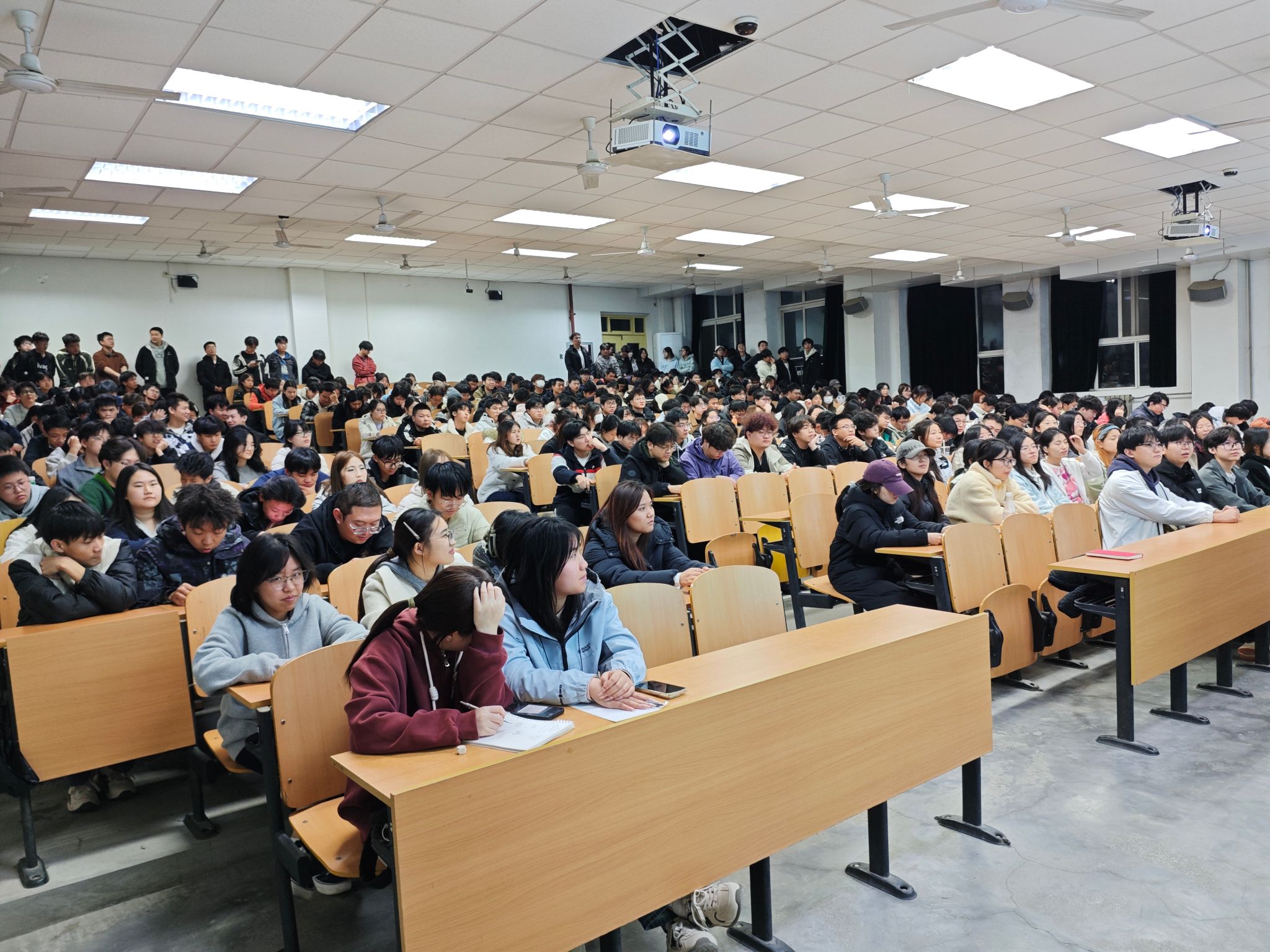 分享會內(nèi)容干貨滿滿,貼合學(xué)生實際。蔡乾鋒逐一解答了同學(xué)們關(guān)于學(xué)業(yè)規(guī)劃、四六級備考、專業(yè)分流、未來選擇的疑惑,鼓勵大家在大二這個關(guān)鍵期樹立目標、沉心治學(xué)、拒絕迷茫,以高效的規(guī)劃和扎實的努力,鋪就未來的成才之路。現(xiàn)場互動頻繁,氛圍熱烈。同學(xué)們認真聆聽,深受啟發(fā),紛紛表示對未來發(fā)展有了更清晰的認知和方向感。