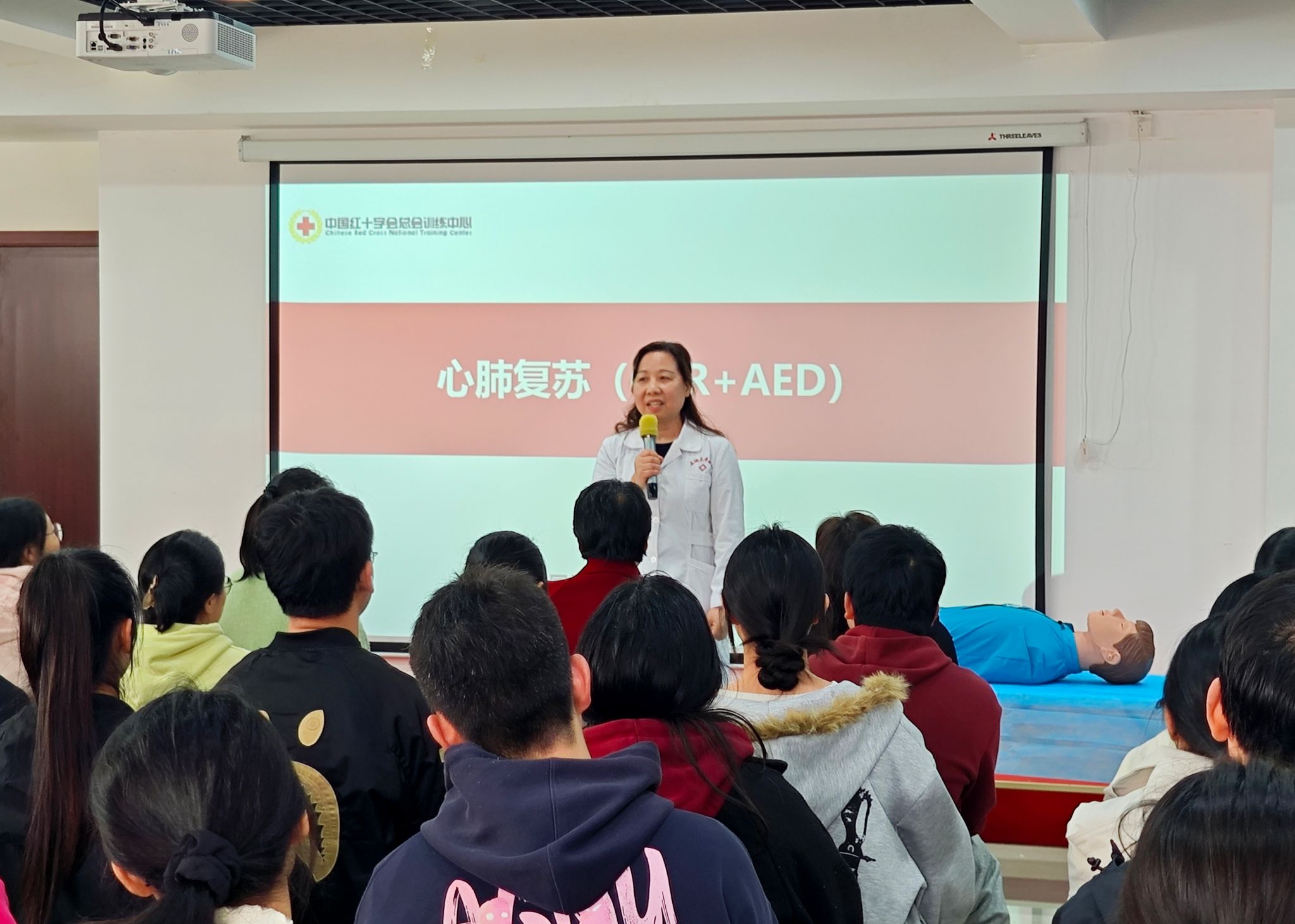 校醫(yī)院急救負責人伍曉燕主任詳細介紹了培訓安排。本次培訓采用“理論精講+實操演練+考核認證”一體化模式,重點圍繞心肺復蘇、AED操作、氣道異物梗阻急救等核心技能開展教學,由校醫(yī)院專業(yè)急救團隊全程授課指導,確保培訓過程規(guī)范、內(nèi)容高效、成果實用。