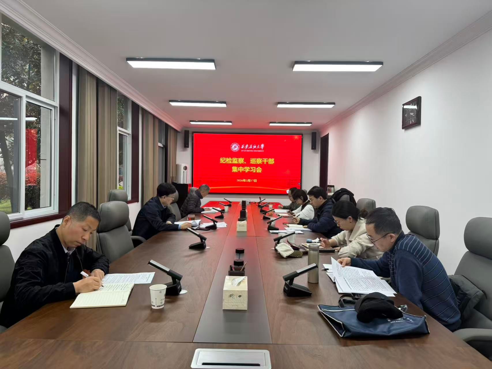 3月17日下午,紀檢巡察干部2026年第3次集中學(xué)習(xí)會在鄠邑校區(qū)辦公樓第五會議室召開。校黨委副書記、紀委書記、監(jiān)察專員王輝強主持學(xué)習(xí)會。紀檢監(jiān)察機構(gòu)、黨委巡察工作辦公室全體干部參加會議。