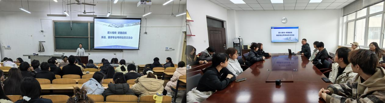 為助力學(xué)生明晰考研方向、掌握備考方法,破解備考困惑,營造勤學(xué)善研、互幫互助的優(yōu)良學(xué)風(fēng)。3月19日,外國語學(xué)院精準對接不同專業(yè)學(xué)生需求,分場次舉辦“薪火相傳,研路啟航”考研動員交流會。其中,英語、翻譯專業(yè)專場在B114教室舉行,俄語專業(yè)專場在崇文樓314會議室同步開展,年級輔導(dǎo)員及各專業(yè)備考學(xué)生參加了本次活動。