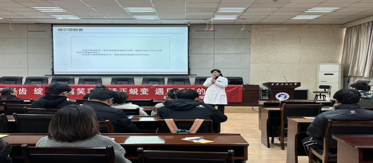 校醫(yī)院預(yù)防保健科主任洪艷萍同步開展常見傳染病防控專題講解,聚焦保護(hù)易感人群這一關(guān)鍵防控環(huán)節(jié),以疫苗接種為核心,系統(tǒng)介紹出血熱疫苗、HPV疫苗、流感疫苗、乙肝疫苗等校園重點(diǎn)接種疫苗的適用人群、接種須知及防護(hù)效益,闡釋疫苗接種在阻斷傳染病校園傳播、保障師生身體健康中的重要作用,進(jìn)一步完善校園傳染病防控、科學(xué)防控的健康保障體系。