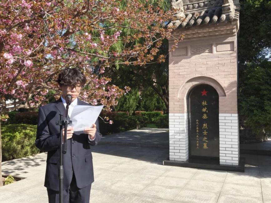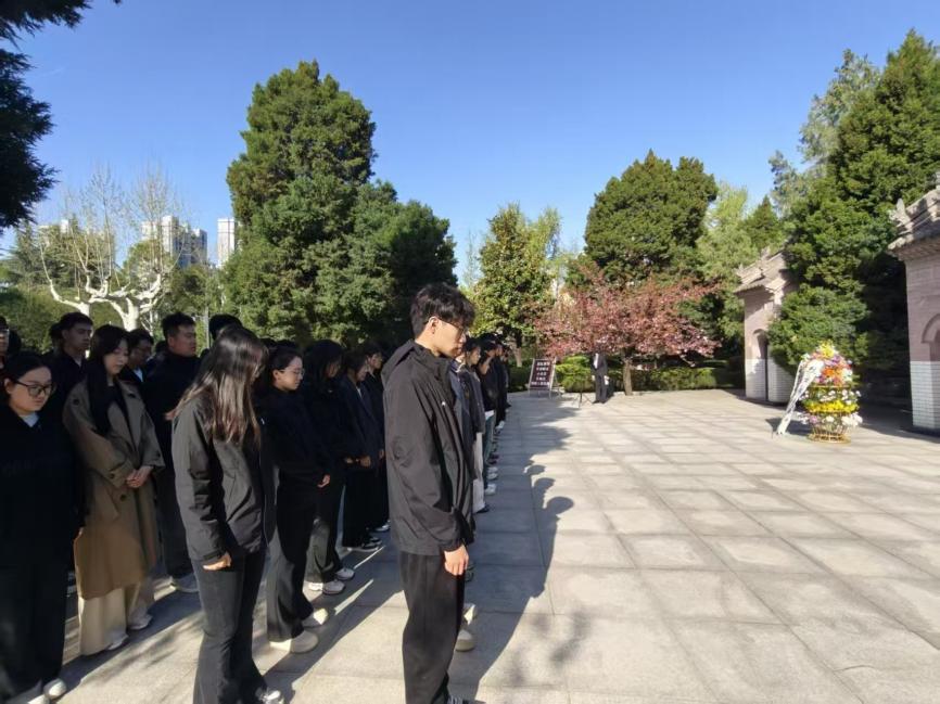 陵園內(nèi)蒼松翠柏環(huán)繞,烈士紀(jì)念碑莊嚴(yán)肅穆,浩然正氣縈繞其間?;顒?dòng)由校研究生會(huì)張振陸主持。研究生黨員代表手捧花籃,緩步走向烈士紀(jì)念浮雕,鄭重敬獻(xiàn)花籃,寄托對(duì)革命先烈的無限哀思。全體師生整齊列隊(duì)、神情凝重,在烈士就義紀(jì)念浮雕前集體默哀一分鐘,深切緬懷為民族獨(dú)立、人民解放和國家富強(qiáng)英勇獻(xiàn)身的革命先烈,致以最崇高的敬意。