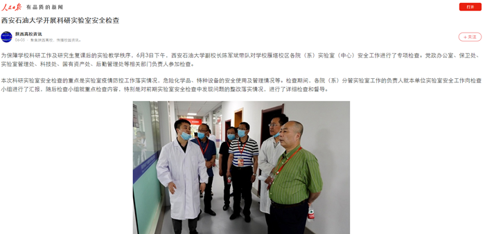 此次檢查是西安石油大學(xué)實(shí)驗(yàn)室安全管理工作的一項(xiàng)具體舉措,旨在督促各院(系)加強(qiáng)實(shí)驗(yàn)室安全管理工作,確保實(shí)驗(yàn)室平穩(wěn)有序運(yùn)行,維護(hù)學(xué)校正常的教育教學(xué)秩序。