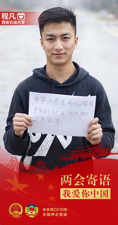 2019年3月,舉世矚目的全國“兩會”即將召開?!拔磥砭W(wǎng)”特地推出了“兩會寄語”欄目,我校黨委宣傳部推薦的三名大學(xué)生的寄語被“未來網(wǎng)”采用,與中國人民大學(xué)、廣西大學(xué)等高校大學(xué)生的寄語一起刊發(fā)。