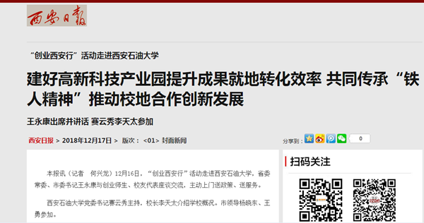 本報(bào)訊(記者 何興龍)12月16日,“創(chuàng)業(yè)西安行”活動(dòng)走進(jìn)西安石油大學(xué),省委常委、市委書記王永康與創(chuàng)業(yè)師生、校友代表座談交流,主動(dòng)上門送政策、送服務(wù)。