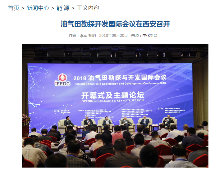 中化新網(wǎng)訊 9月18日至20日,由西安石油大學(xué)和陜西省石油學(xué)會(huì)聯(lián)合主辦的2018油氣田勘探與開發(fā)國際會(huì)議在西安舉行。來自中國、美國、俄羅斯、加拿大、澳大利亞等20個(gè)國家的近千名專家、學(xué)者,聚集古城縱論油氣勘探新技術(shù)、新成果與新認(rèn)識,深入交流探討油氣勘探開發(fā)關(guān)鍵性技術(shù)難題,推動(dòng)行業(yè)科技創(chuàng)新發(fā)展。