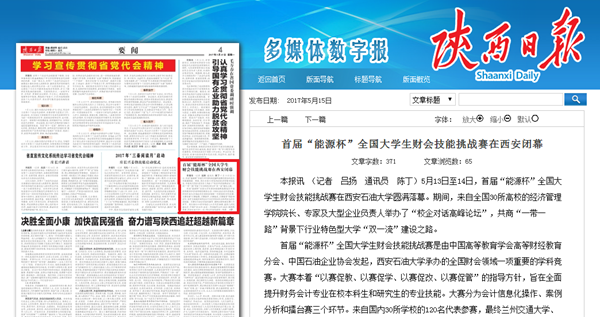 本報訊 (記者 呂揚(yáng) 通訊員 陳丁)5月13日至14日,首屆“能源杯”全國大學(xué)生財會技能挑戰(zhàn)賽在西安石油大學(xué)圓滿落幕。期間,來自全國30所高校的經(jīng)濟(jì)管理學(xué)院院長、專家及大型企業(yè)負(fù)責(zé)人舉辦了“校企對話高峰論壇”,共商“一帶一路”背景下行業(yè)特色型大學(xué)“雙一流”建設(shè)之路。