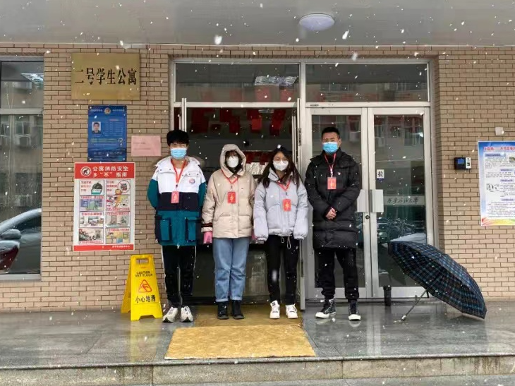 工作中,也有小驚喜。那是2021年的第一場(chǎng)雪,楊寬和其他志愿者早晨六點(diǎn)去西操場(chǎng)參加核酸檢測(cè)值守,又緊接著參與宿舍樓、食堂、小吃街值守任務(wù),一直忙到晚上10點(diǎn)鐘,老師們發(fā)現(xiàn)他們還沒吃飯,就趕緊送來了晚飯,楊寬笑著說:“雖然因?yàn)檎镜脮r(shí)間太長(zhǎng)導(dǎo)致腿腳麻木,但我感到心里面暖洋洋的,那是我吃過最香的一頓晚餐?!?/p>