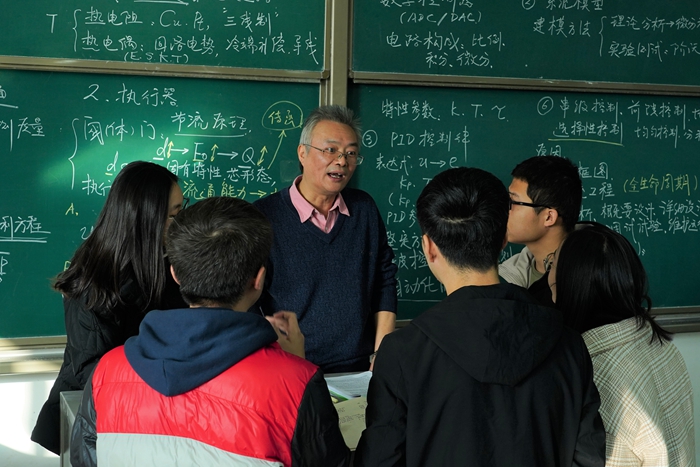 “師者,所以傳道授業(yè)解惑也”?;匦9ぷ髦蟮慕?0年來,汪躍龍老師先后承擔過13門課程的教學(xué)任務(wù),每年大幅超額完成學(xué)校規(guī)定的教學(xué)工作量。作為專業(yè)負責(zé)人,不論日??蒲泻徒虒W(xué)任務(wù)多么忙碌,汪老師始終以身作則,堅持高標準完成各項工作。他經(jīng)常是白天在鄠邑校區(qū)上完課以后,晚上加班加點趕回雁塔校區(qū)繼續(xù)工作,不論是寫材料、看文獻、做實驗,還是繼續(xù)給研究生上課,吃一個肉夾饃、喝兩口水繼續(xù)投入“戰(zhàn)斗”已經(jīng)成為他的工作常態(tài)。擔心學(xué)生理解不好課程內(nèi)容,汪老師上課從來不照著PPT上課,而是把重點內(nèi)容和疑難問題工工整整用粉筆寫在黑板上,類似工業(yè)儀表等內(nèi)部構(gòu)造復(fù)雜難懂的重要知識點,汪老師更是在黑板上一邊一筆筆親自畫圖一邊給學(xué)生耐心講解。每次課間,他總會不厭其煩幫助學(xué)生解疑答惑,鼓勵學(xué)生刻苦鉆研、揚長避短。在學(xué)生實驗、測試和研究不斷失敗或者遇到瓶頸問題一籌莫展時,他總會專門給學(xué)生“開個小灶”,幫助學(xué)生分析癥結(jié)。